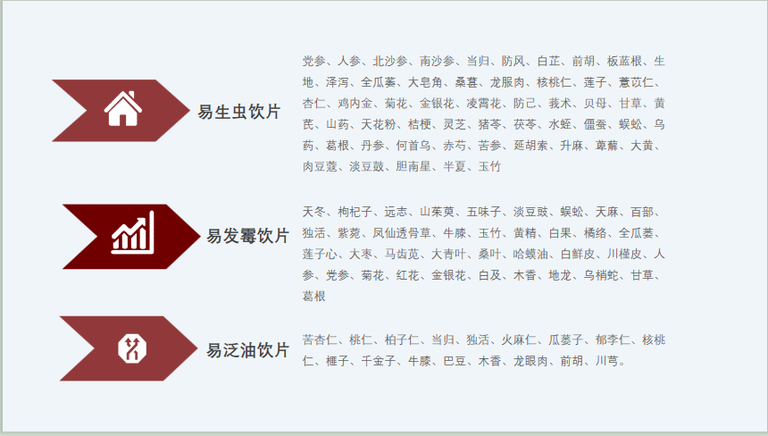切片后不易干燥,若储存温度高、湿度大均易吸潮变软发黏、霉变和虫蛀。
