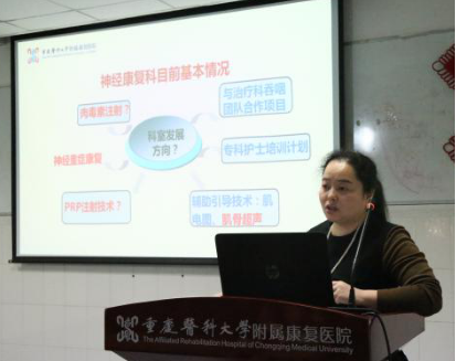 为加强康复学科建设,学习借鉴国内优秀康复管理模式及经验,2018年3月18日,重医附属康复医院"康复医学学科建设与管理沙龙论坛"在大公馆院区四楼会议室举行。本次论坛特邀我国康复首席专家励建安教授进行学科建设方面的指导,医院常务副院长谢友红、副院长贾英、纪委书记黄开秀出席会议,职工代表50余人次参加了此次学术论坛。
