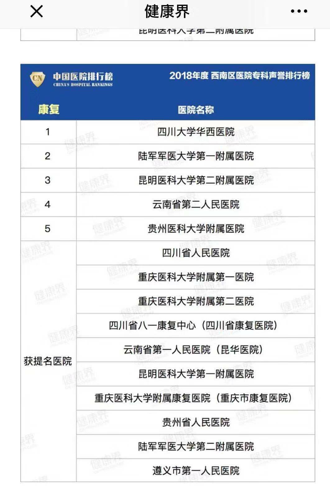 中国医院排行榜公布,重医附属康复医院榜上有名