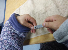 彭爷爷右手二指捏力及侧捏力均可,但他依旧不“能”修剪左手指甲,经治疗师引导后独立完成修剪指甲。