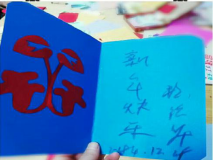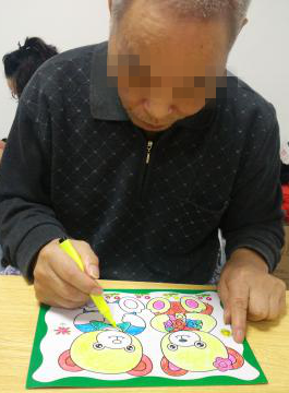 彭爷爷右手手腕及手指的灵活性欠佳,通过线稿涂色(快速划横线、竖线及画圈),并在元旦制作贺卡的小组活动中完成祝福语书写和签名。