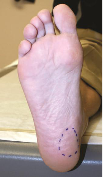 图1 足底筋膜炎典型疼痛区