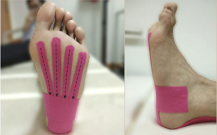 肌内效贴可以降低负重时足底筋膜的张力,从而起到保护足底筋膜的作用,可在短期内缓解足底疼痛。