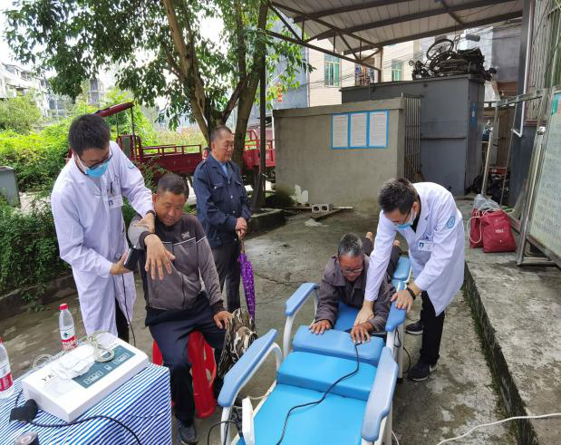9月7日上午,我院扶贫义诊团队在车田乡卫生院为车田乡当地百姓提供了义诊咨询、康复治疗服务,解答百姓关于疾病预防、治疗和康复的疑问,提供肌效贴和深层肌肉治疗等服务,测血压、讲病情、开药方这些简单的检查有条不紊的进行。通过健康义诊活动,把优秀的医疗专家送到群众家门口,让村民足不出村就能享受到优质的医疗服务。