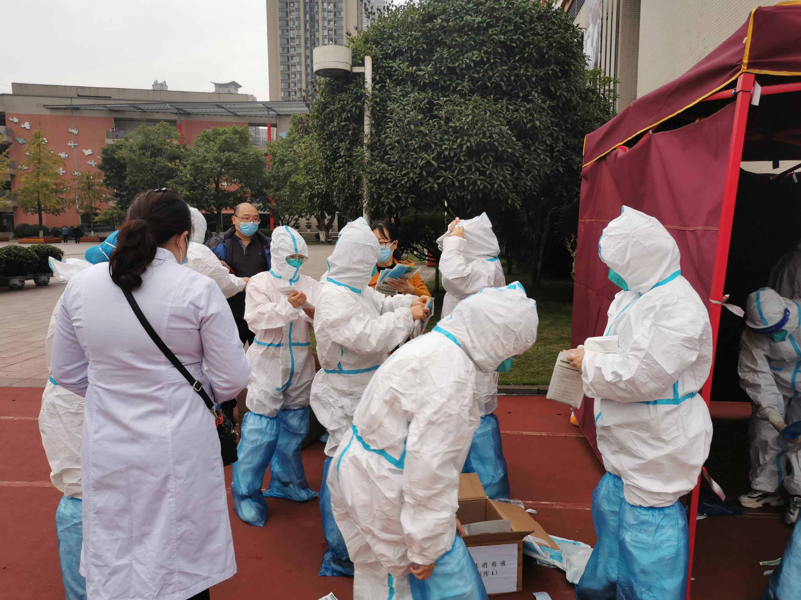 近来新冠疫情出现反弹,疫情就是命令,防控就是责任。为保障人民群众生命健康安全,11月4日14:30,我院积极响应九龙坡区卫健委抽调人员到核酸采样一线的紧急通知,迅速集结来自院感办公室、儿科、神经康复科、骨关节康复科、心肺康复科、检验科的10名医务人员,由医护科带队于15:20赶到谢家湾小学核酸采集点。