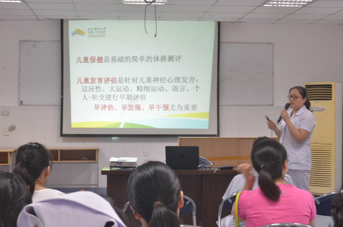 孩子的健康成长是每个家庭的最大心愿,婴幼儿时期是个体发展的奠基时期,不恰当的育婴方式是导致日后儿童健康问题的根源所在。为满足家长朋友们了解宝宝神经和运动发育状况的需求,正确掌握儿童保健知识,2015年7月7日下午3点,以“健康成长 携手前行”为主题的第5期健康教育大讲堂专题讲座在大公馆康复院区门诊四楼会议室举办。此次讲座由综合办黄开秀主任主持,辖区居民、在院患者及家属、医院职工共计40余人参加。