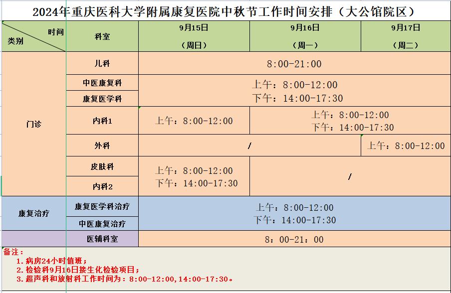 2024年重庆医科大学附属康复医院中秋节工作时间安排_重庆医科大学附属康复医院