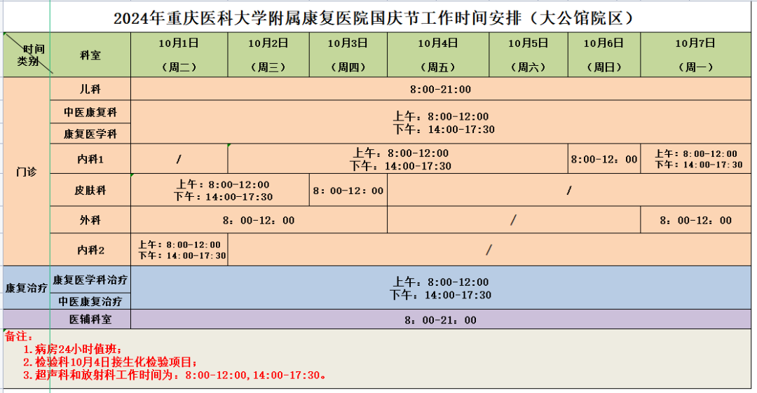 2024年重庆医科大学附属康复医院国庆节工作时间安排_重庆医科大学附属康复医院