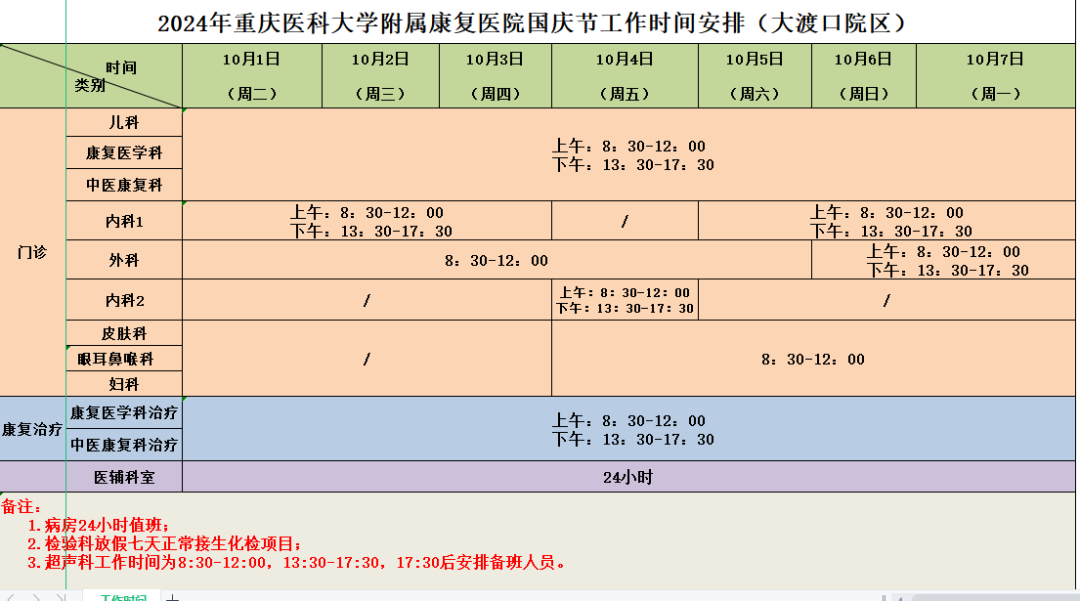 2024年重庆医科大学附属康复医院国庆节工作时间安排
